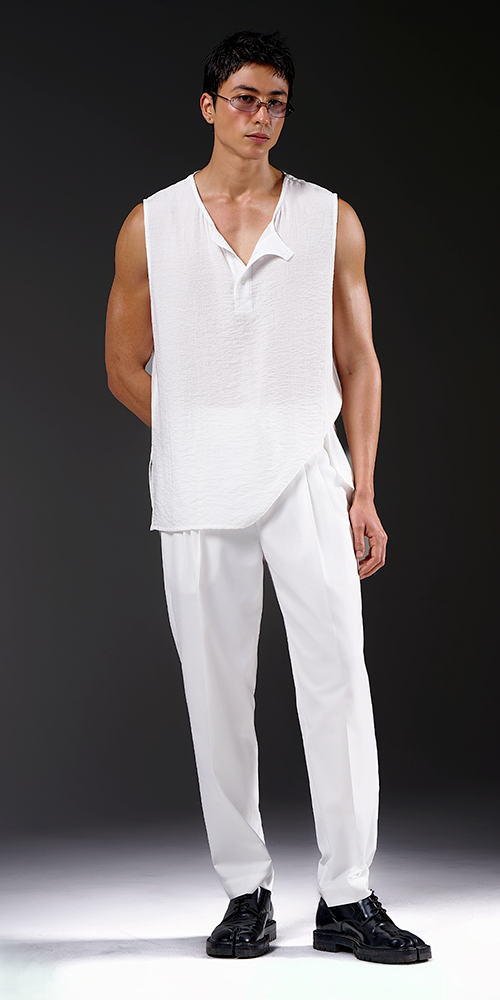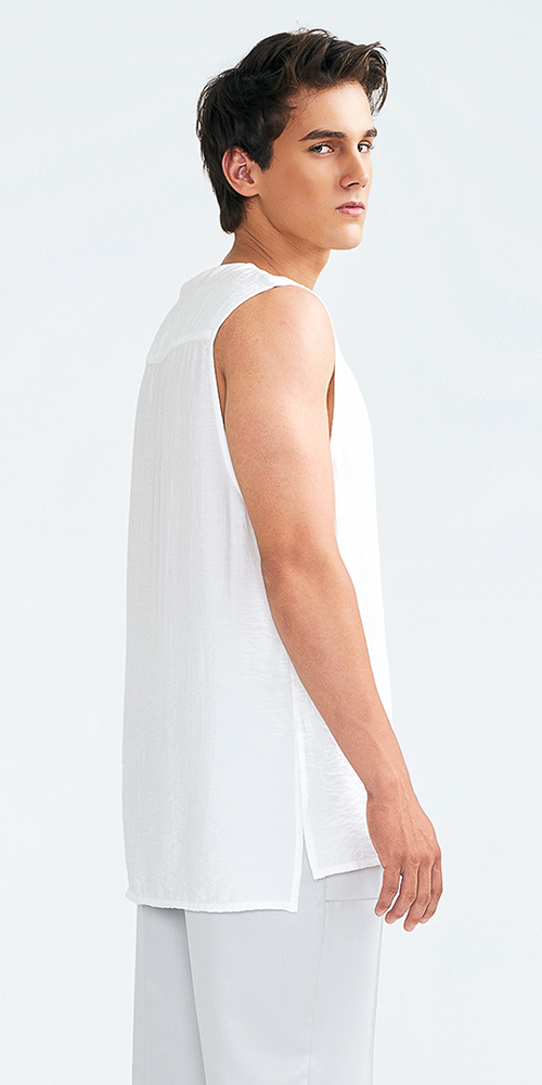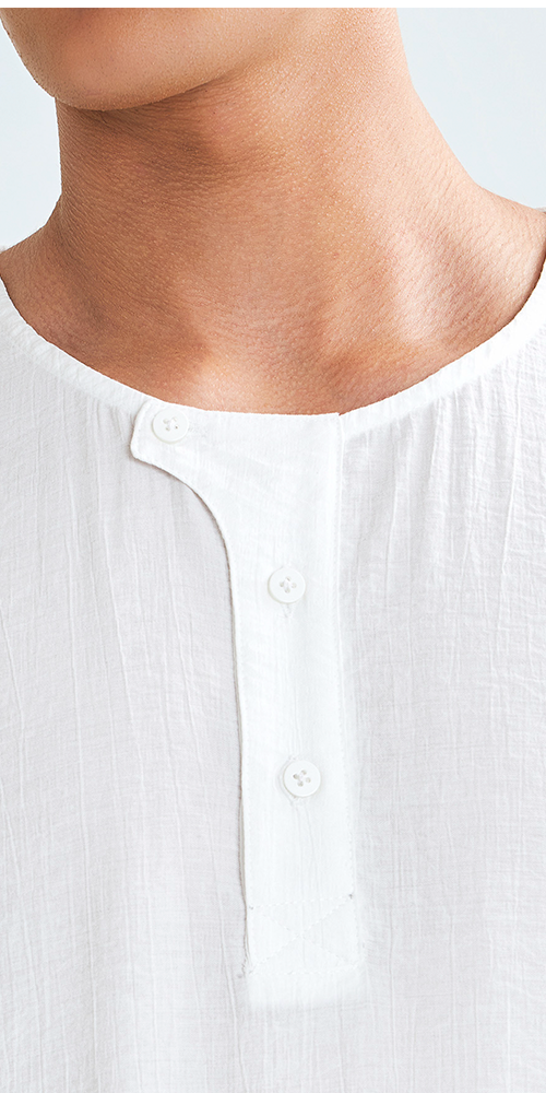 Regata de modelagem ampla com vista de botões. Sua estética remete à elegância serena e à força simbólica de um legado atemporal, com referência sutil à nobreza e à presença ancestral.